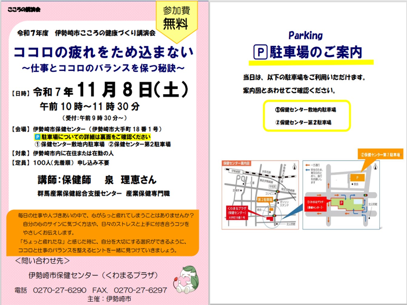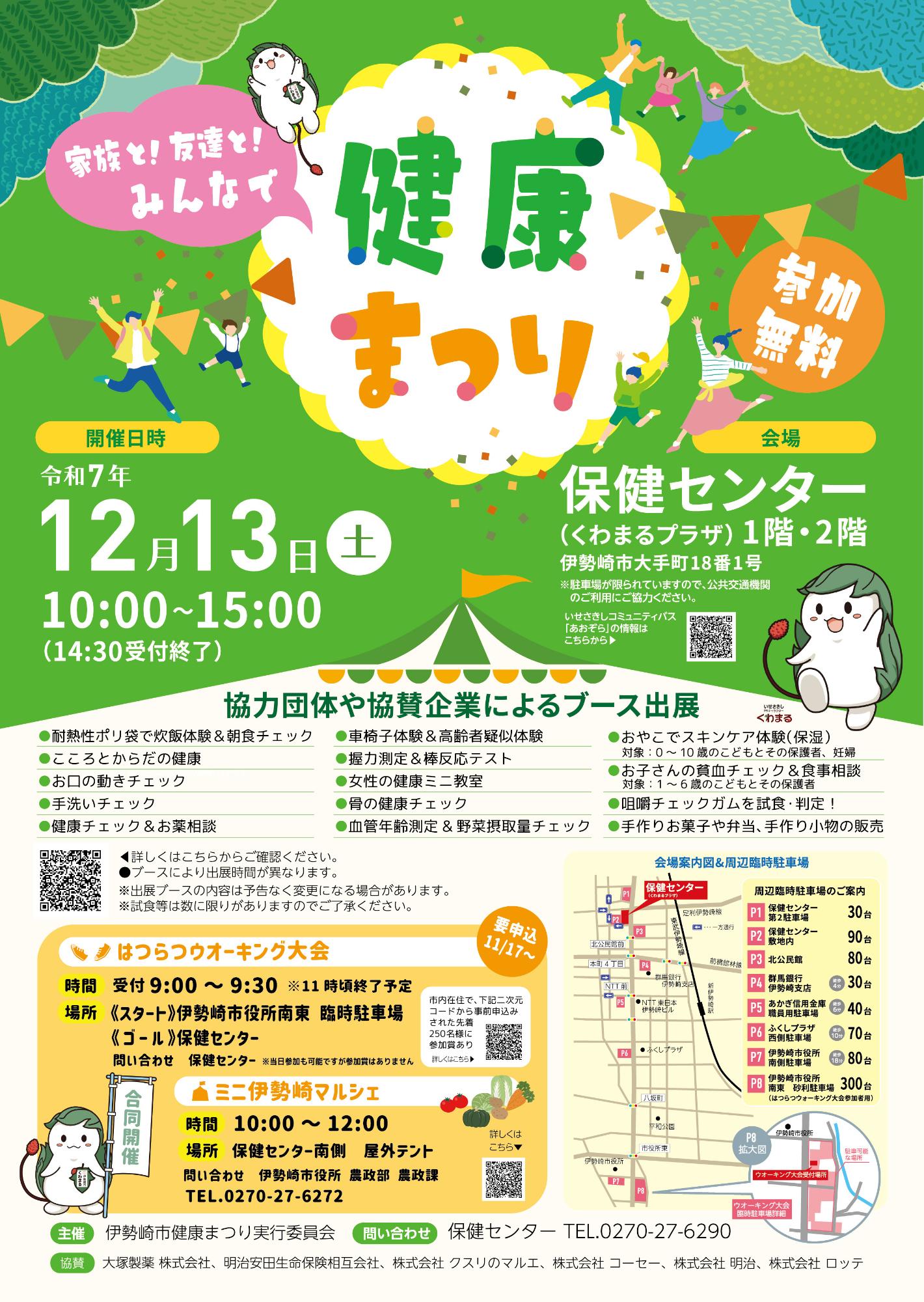 - 健康まつりと合同で「ミニ伊勢崎マルシェ」を開催します。